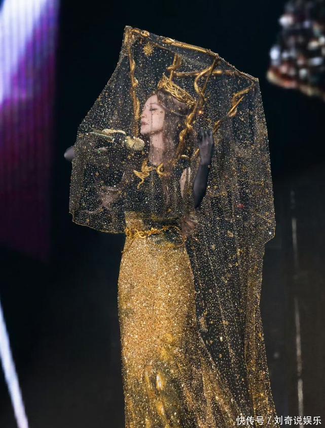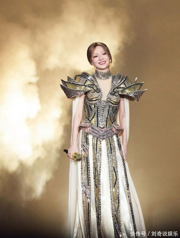 第三张照片,她身穿金“铠甲”,长长的白色披肩,就像是得胜归来的女将军,脖颈上戴着三个项圈,闪闪发光,跟“铠甲”上的闪光服饰相辉映,整个人大方帅气。她感谢粉丝们愿意带着家人朋友来观看她的演唱会,期待与粉丝的再相见。